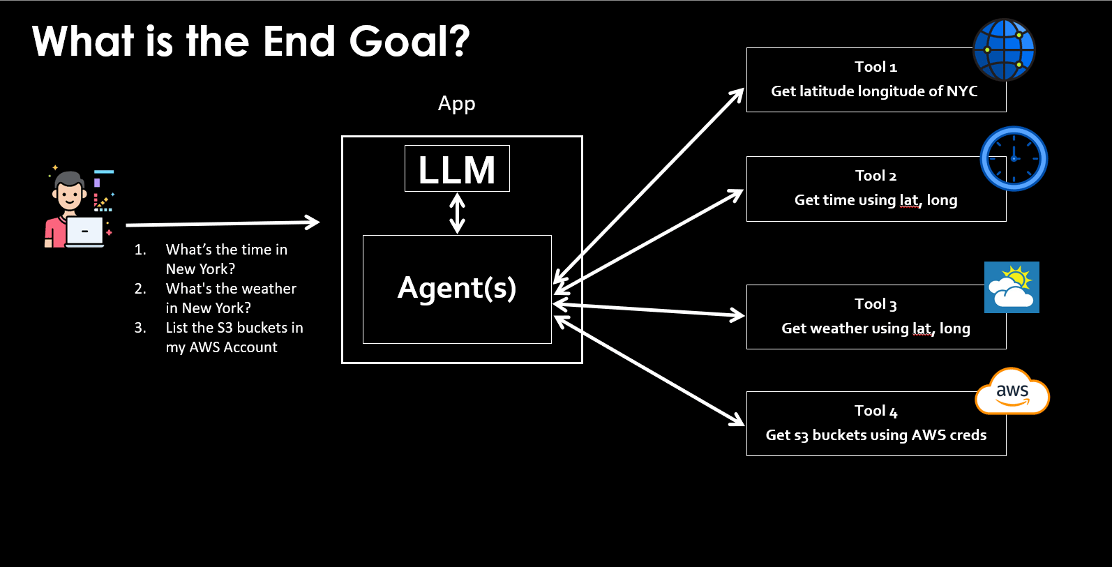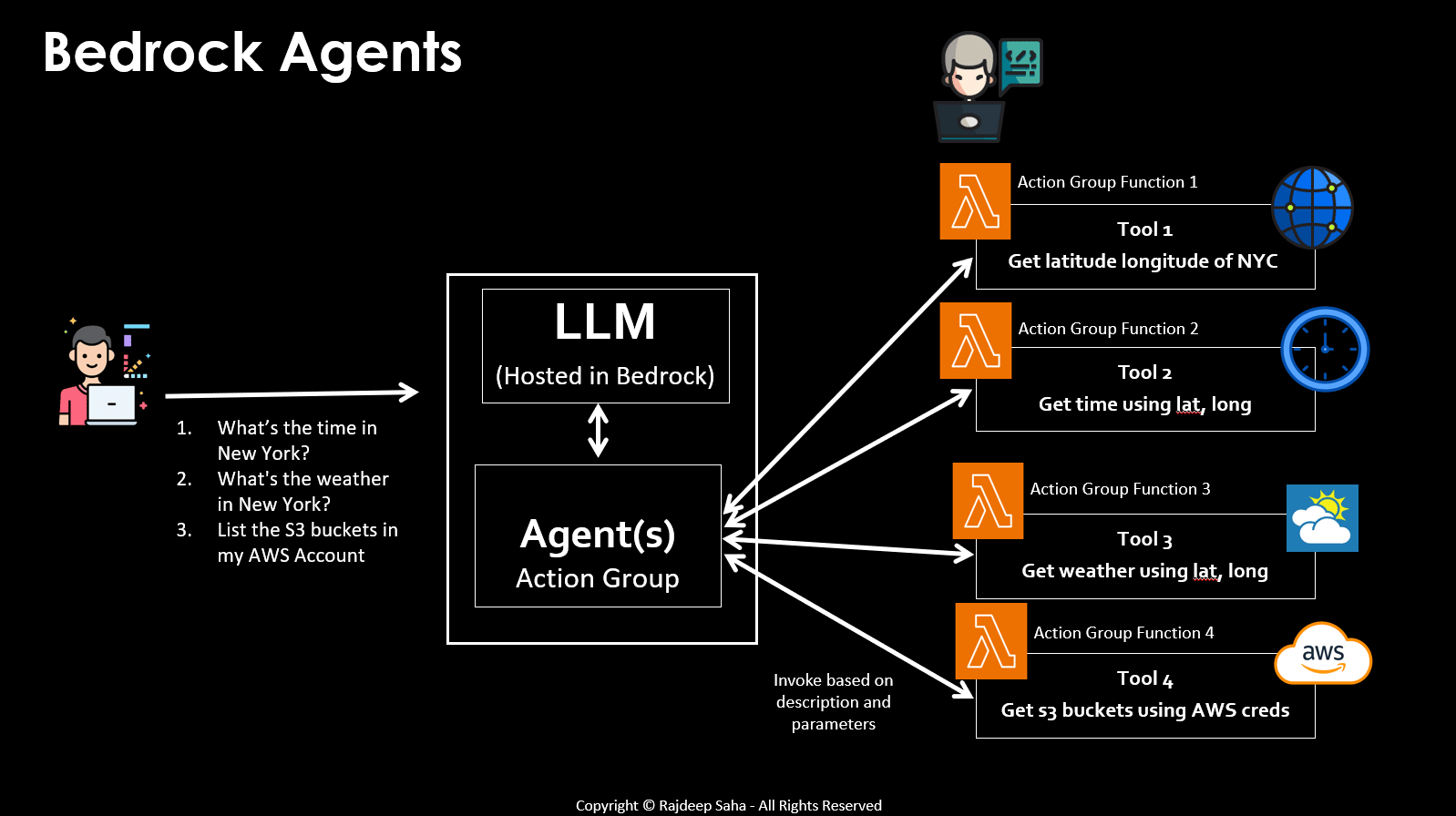 The LLM don't have these information, hence it needs to invoke tools for time, weather, and AWS info. Perhaps it'd call Tool 1 to get latitude and longitude of NYC, and use that to call Tool 2 to get time, and Tool 3 to get weather. And finally it'd call Tool 4 for S3 buckets. That orchestration logic - “call this tool first, then that one if it fails” - used to be something you had to code in workflows. Now, agents handle it automatically. It can call one tool multiple times, properly sequence it, and more - without you coding the logic. To understand the value proposition of this new release, we have to understand the previous iteration - Amazon Bedrock Agents. ☁️ Bedrock Agents: Fully Managed, but VerboseThe flagship platform to run agents on AWS "was" Amazon Bedrock Agents. Below is how it works: